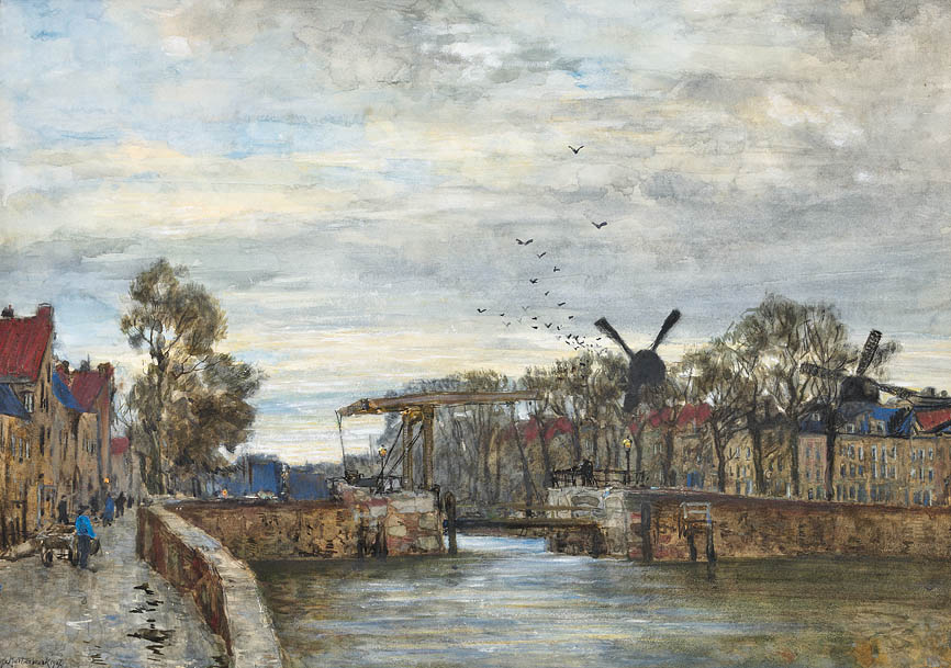 Gezicht op Delfshaven J.H. van Mastenbroek ( 1875 – 1945 ), krijt, aquarel en gouache, 50 x 70 cm, ges. en ged. l.o. 1907 VERKOCHT Lees meer over Mastenbroek, J.H. van Dit werk is niet meer te koop › Bekijk actueel werk van deze kunstenaar