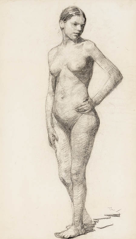 W.B. Tholen ( 1860 – 1931 ), zwart krijt, 59 x 35 cm, gem. r.o ca. 1888 VERKOCHT