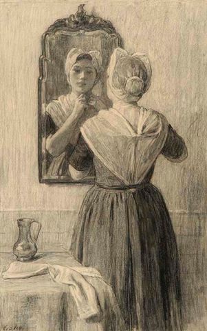 Weesmeisje voor spiegel Prof. N. vd Waay( 1883 – 1936 ), 50 x 80 cm, zwart krijt, ges. r.o. VERKOCHT Lees meer over Prof. Waay, N. vd Dit werk is niet meer te koop › Bekijk actueel werk van deze kunstenaar