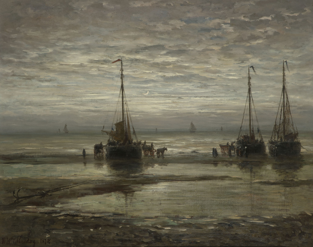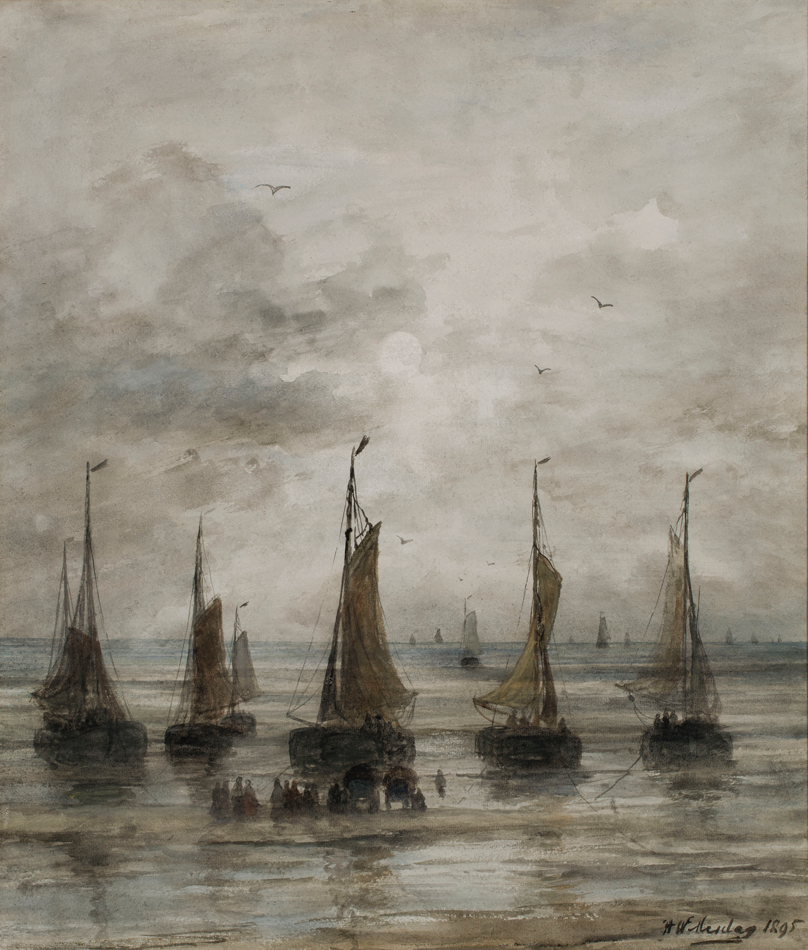Mesdag (1831-1915) koos pas in 1866, 35 jaar oud, voor het kunstenaars vak. Daarvoor had hij in zijn vaders bankbedrijf gewerkt en getekend in zijn vrije tijd. In 1856 huwde hij Sientje van Houten, die zelf ook schilderde en later zelf een van de belangrijkste vrouwelijke vertegenwoordigers van de Haagse School zou worden. Toen haar vader in 1864 overleed en een aanzienlijke erfenis naliet, kon Mesdag zich uit de firma terugtrekken en stimuleerde Sientje haar man om zich geheel aan de schilderkunst wijden. Om zich verder in de kunst te bekwamen verhuisde het echtpaar naar Brussel, waar Mesdag begeleiding kreeg van de Nederlandse schilder Willem Roelofs. In 1869 vestigde Mesdag zich met vrouw en kind dichtbij de kust, in Den Haag. De zee werd zijn hoofdthema. Het Scheveningse strand werd zijn favoriete schilderstek.Internationaal brak Mesdag door toen hij in 1870 een medaille won op de Parijse Salon. Zijn spectaculairste werk, het ‘Panorama Mesdag’, kwam in 1881 tot stand.