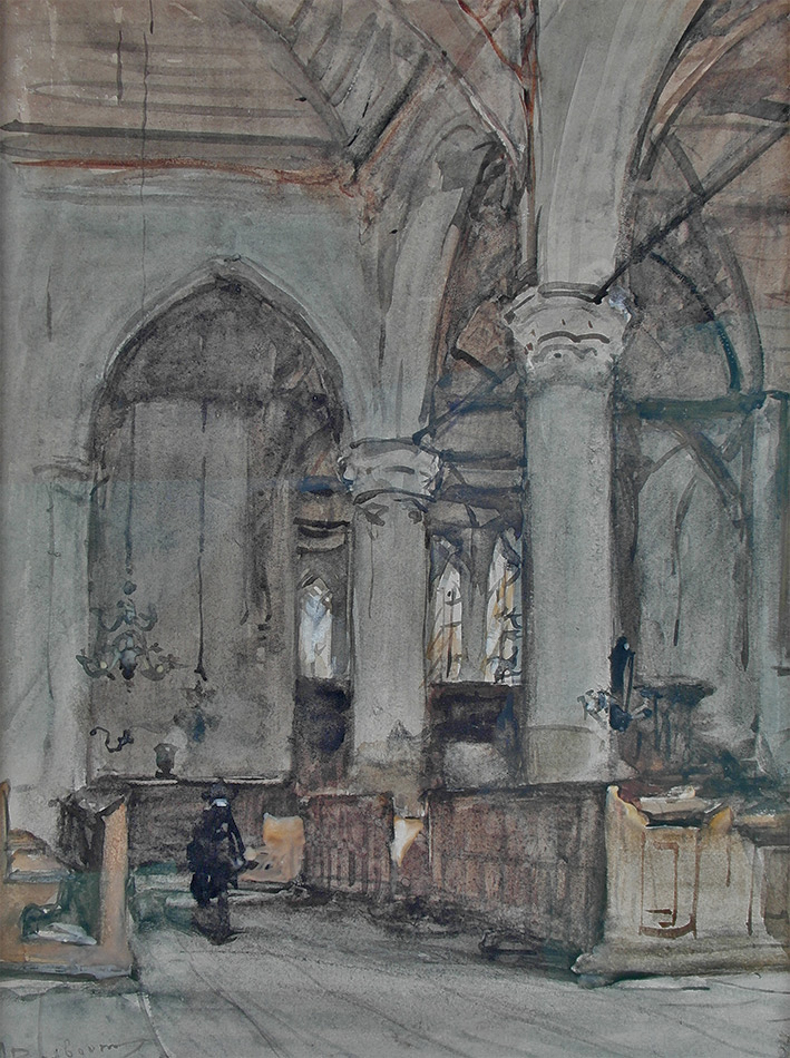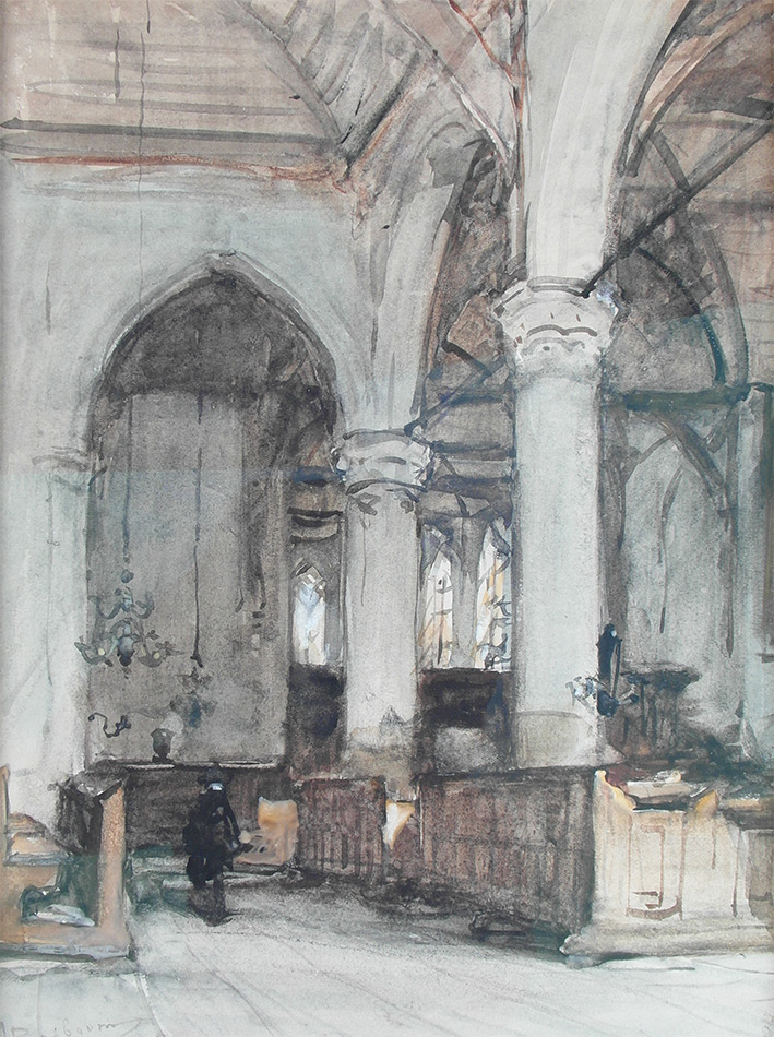 J. Bosboom, aquarel, gouache en krijt, afm. 33 x 24 cm, ges. l.o. VERKOCHT