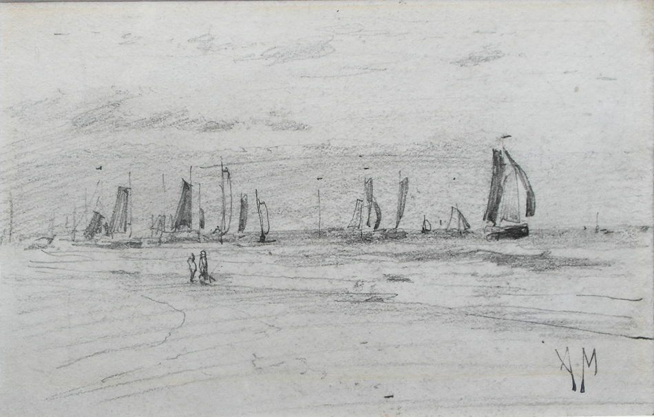 N. van der Waay ( 1855 – 1936 ), houtskool en gekleurd krijt, met wit gehoogd, 38 x 51 cm, ges. r.o.  VERKOCHT