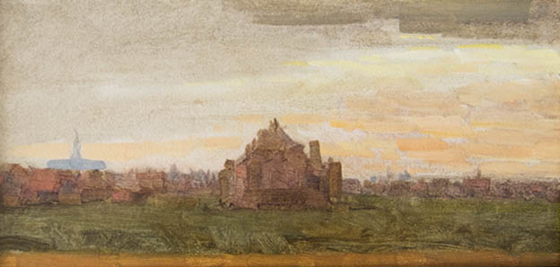 G.W. Dijsselhof (Zwollerkarspel 1866 – 1924 Overveen), olieverf op paneel, 10,5 x 22 cm, met sticker achterzijde ‘geschilderd door G.W. Dijsselhof’ VERKOCHT