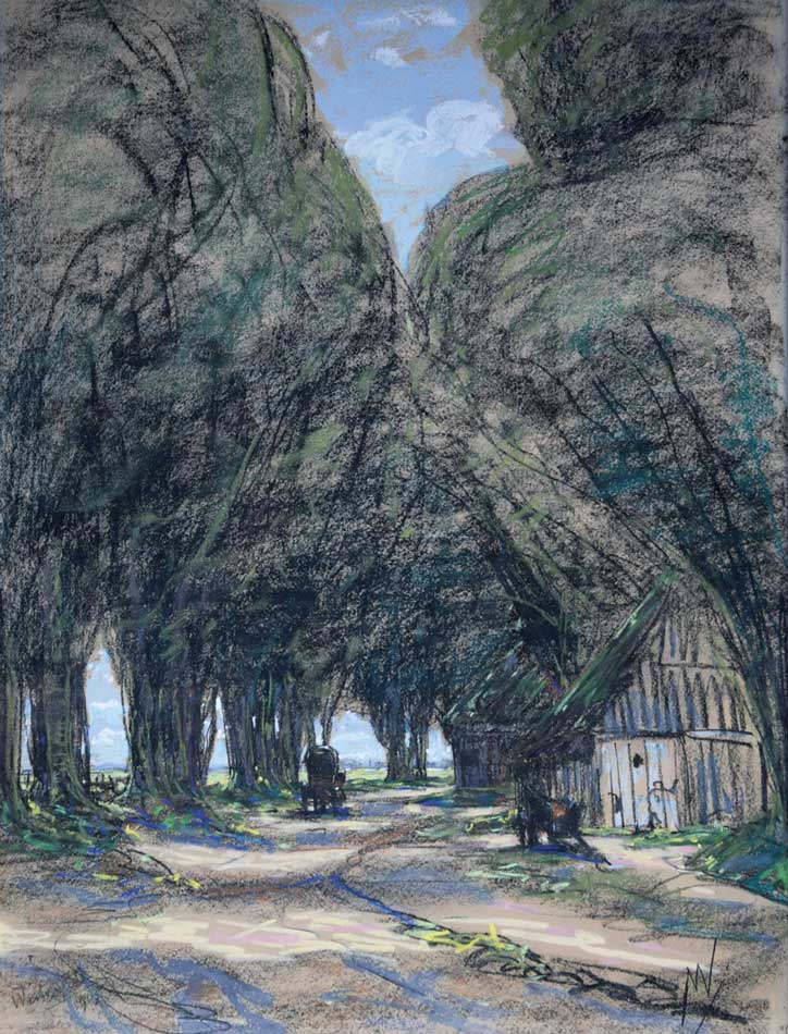 M. van der Valk (Amsterdam 1857 – 1935 Laren), zwart en gekleurd krijt, 63 x 48 cm, gemonogrammeerd rechts onder en annotatie Westervelde 1903