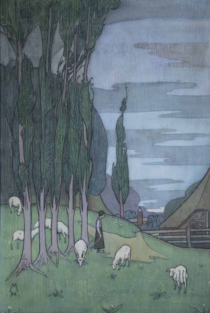 Herderin met haar schapen S. Moulijn (Rotterdam 1866 – 1948 Den Haag), gouache, gemonogrammeerd en gedateerd links onder ’94. Herkomst : erven Simon Moulijn. VERKOCHT Lees meer over Moulijn, S. Dit werk is niet meer te koop › Bekijk actueel werk van deze kunstenaar