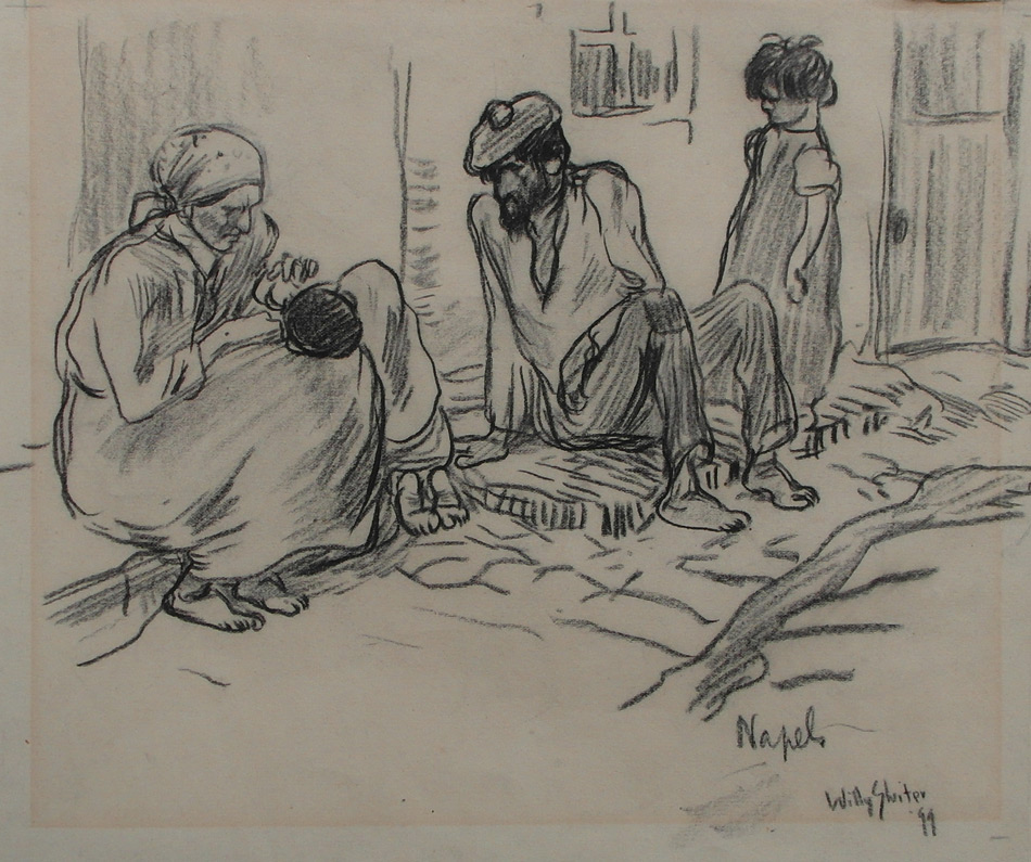 W. Sluiter ( 1873 – 1949 ), zwart krijt, 22 x 27 cm, ges. r.o. en ged. ’99 en Napels, herkomst: Collectie Dr. J.A. van Dongen, veiling P. Brandt VERKOCHT