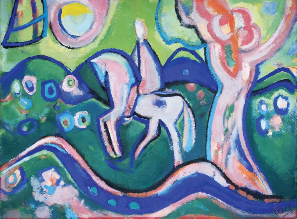 Droomruiter G. Benner (Leeuwarden 1897 – 1981 Nijemirdum), gouache, 55 x 74,5 cm, monogram rechts onder Herkomst : privé collectie, het werk is destijds verworven via een loterij ten behoeve van de slachtoffers van de Watersnoodramp 1953 VERKOCHT Lees meer over Benner, G. Dit werk is niet meer te koop › Bekijk actueel werk van deze kunstenaar