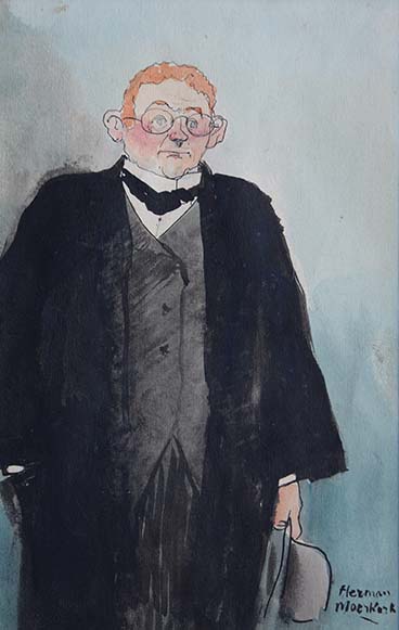 H. Moerkerk (Den Bosch 1879 – 1949 Haarlem), zwarte inkt met aquarel, 20,5 x 13 cm, gesigneerd rechts onder met annotatie op de achterzijde George Grosz