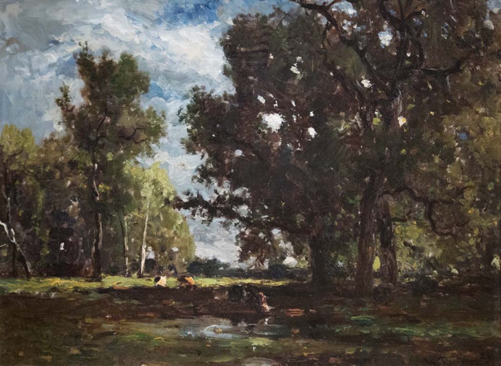W. Roelofs (Amsterdam 1822 – 1897 Berchem), olieverf op doek, 27 x 37 cm, gesigneerd rechts onder en geannoteerd 29. VERKOCHT
