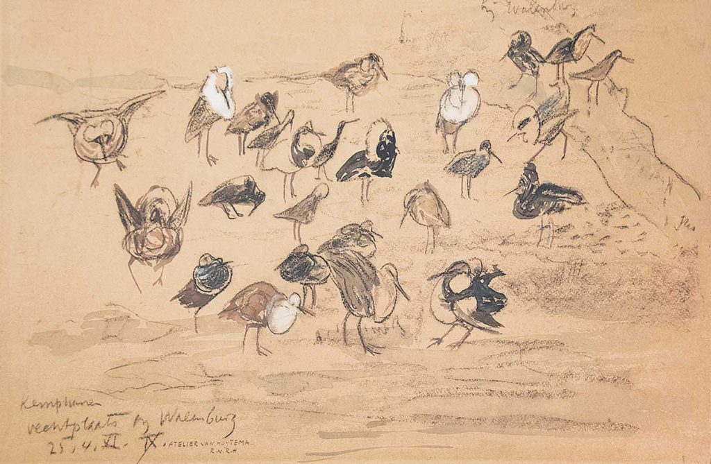 Th. van Hoytema (1863 – Den Haag – 1917), zwart krijt en aquarel, 33 x 50,5 cm, gedateerd 25.4. XI en geannoteerd Vechtplaats bij Walenburg Texel, atelier van Hoytema R.N.R.H. VERKOCHT