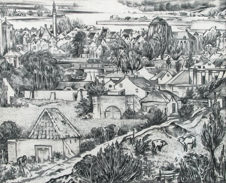 ‘Gezicht op Veere’ is realistisch getekend in de sfeer van de jaren ’20. In dit werk is de invloed van Indonesië duidelijk zichtbaar.