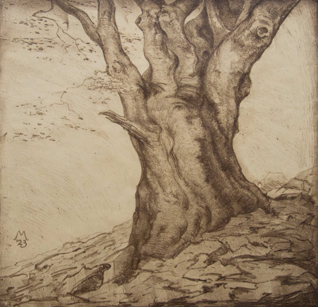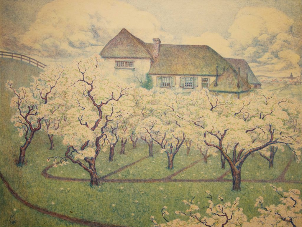 Simon Moulijn (Rotterdam 1866 – 1948 Den Haag) houtsnede in twee kleuren gedrukt, 22,5 x 19,9 cm, gemonogrammeerd en gedateerd in de voorstelling M 1915 VERKOCHT