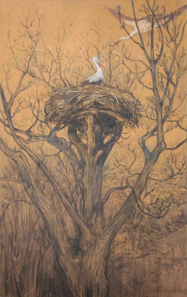 Th. van Hoytema (1863 – Den Haag – 1917), zwart krijt en aquarel, 50 x 31,5 cm, rechts onder atelier van Hoytema R.N.R.H. VERKOCHT