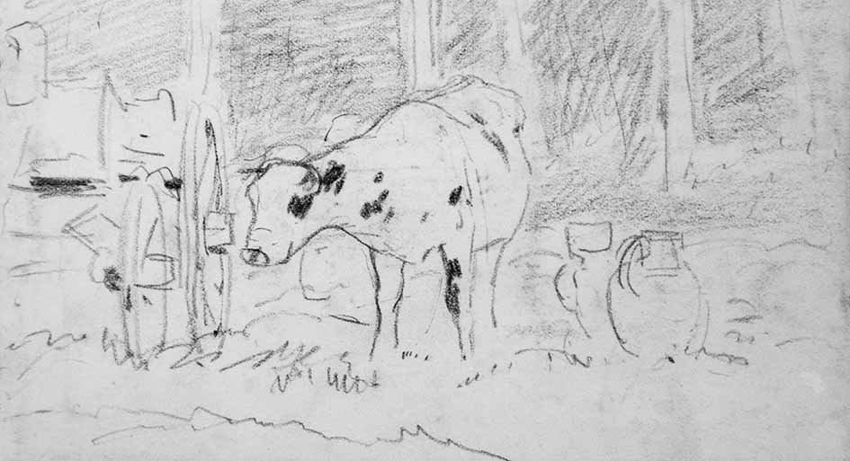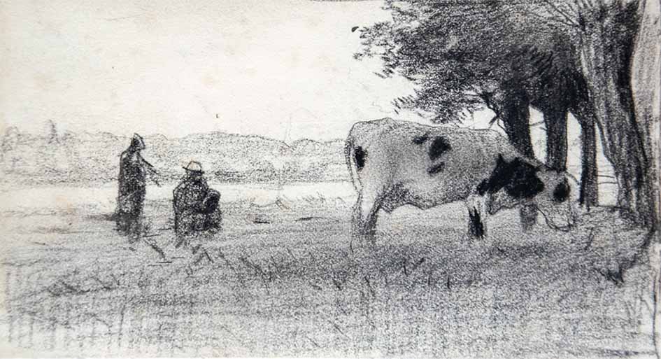 A. Mauve (Zaandam 1838 – 1888 Arnhem), zwart krijt, 10 x 16 cm