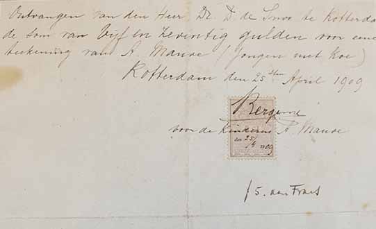Annotatie achterzijde uit 1909 afkomstig nalatenschap Mauve VERKOCHT