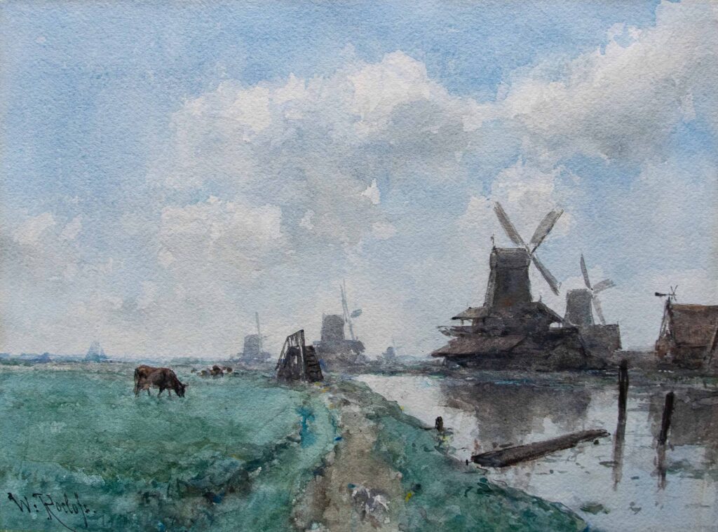 W. Roelofs (Amsterdam 1822 – 1897 Berchem), aquarel op papier, 34,7 x 46,8 cm, gesigneerd links onder VERKOCHT