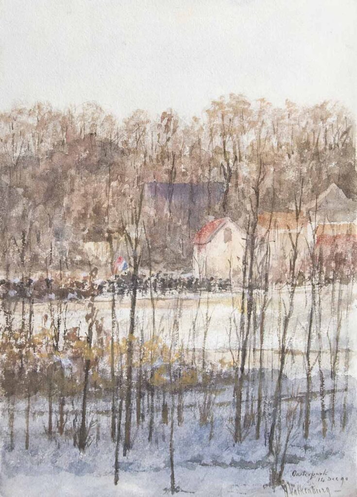 H. Valkenburg (Terwolde 1826 – 1896 Amsterdam), aquarel, 35,5 x 25,5 cm, gesigneerd en gedateerd rechtsonder 14 dec ’90 en geannoteerd Oosterpark VERKOCHT