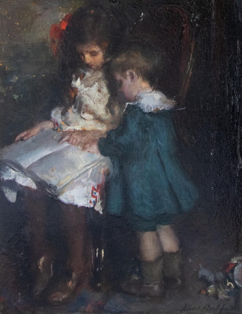 Albert Roelofs was de zoon van Willem Roelofs die aan de wieg stond van de Haagse School. In tegenstelling tot zijn vader die vooral bekend is om zijn landschappen, specialiseerde Albert Roelofs zich in portretten en huiselijke taferelen. Na een opleiding aan de kunstacademies Den Haag en Brussel trouwde hij in 1900 met Elisabeth Françoise (‘Tjieke’) Bleckman. Tjieke en hun drie kinderen stonden vaak model. Hij werkte impressionistisch met vlotte toets. Albert Roelofs was ambitieus en getalenteerd en daardoor zeer succesvol. Hij gaf ook les, onder andere aan Koningin Wilhelmina. Roelofs junior stierf al op jonge leeftijd, hij werd slechts 43 jaar. Daardoor is zijn oeuvre klein, maar kwalitatief hoogwaardig.