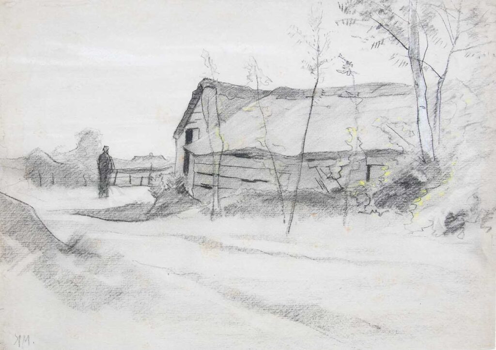A. Mauve (Zaandam 1838 – 1888 Arnhem), zwart en gekleurd krijt, 24 x 34 cm, gemonogrammeerd linksonder VERKOCHT