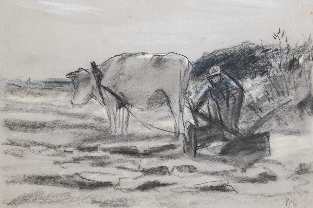 A. Mauve (Zaandam 1838 – 1888 Arnhem), zwart en gekleurd krijt met wit gehoogd, 20 x 30 cm, gemonogrammeerd rechtsonder