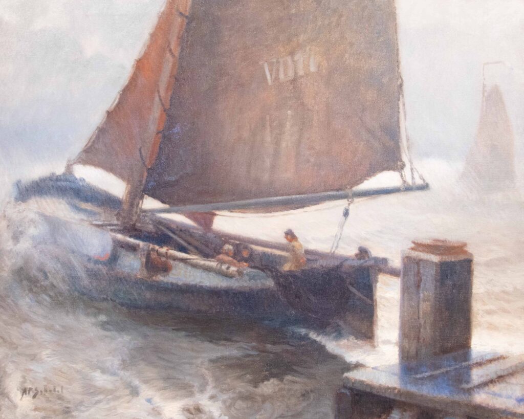 De Dordtse schilder Anthonie Pieter Schotel wilde van jongs af aan schilder worden. Op 25-jarige leeftijd huurde hij een atelier aan de Bomkade in Dordrecht. In 1926 verhuisde hij naar Volendam en van 1929 tot zijn dood in 1958 woonde hij in Laren.