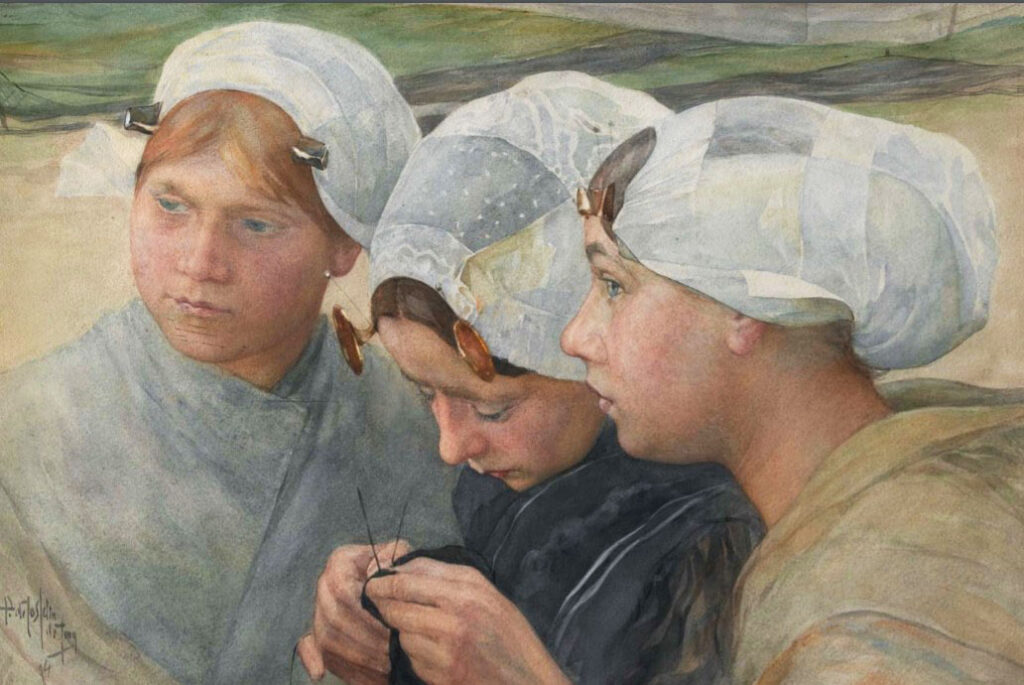 In de collectie van het Openluchtmuseum Arnhem bevindt zich een aquarel ‘Drie Scheveningse meisjes’.