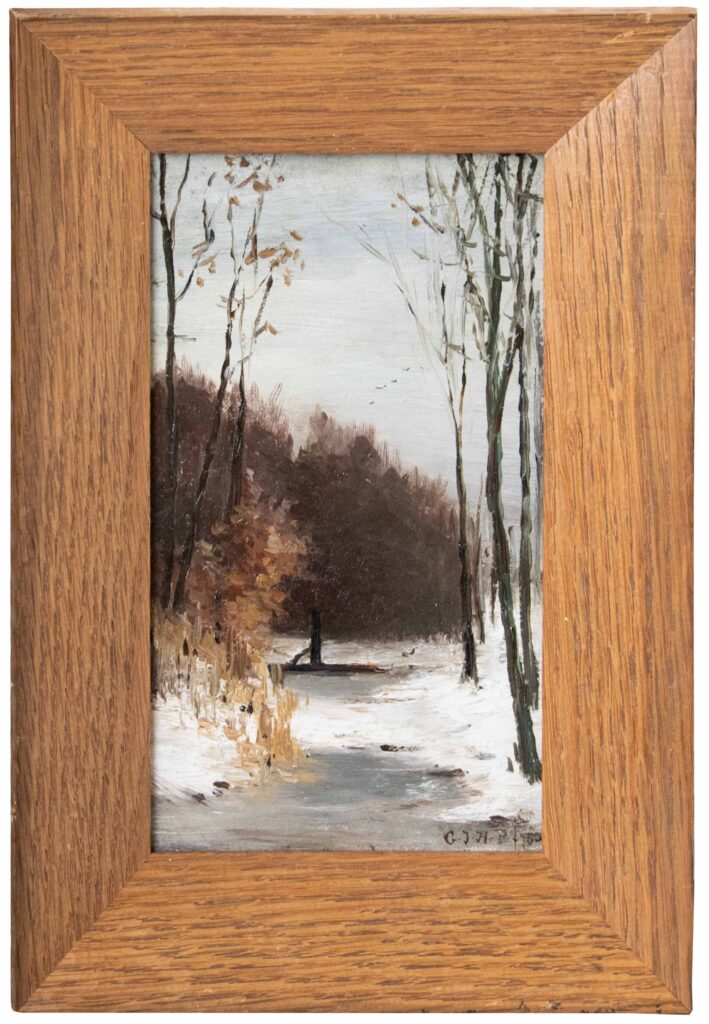 Geo Poggenbeek (1853 – Amsterdam – 1903) , olie op paneel, 18,5 x 11 cm, gemonogrammeerd rechtsonder en gedateerd ’76 VERKOCHT