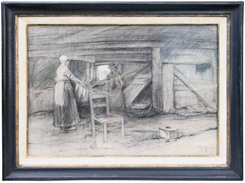 A. Mauve (Zaandam 1838 – 1888 Arnhem), aquarel, zwart krijt met wit gehoogd, 29 x 40 cm, gesigneerd rechtsonder