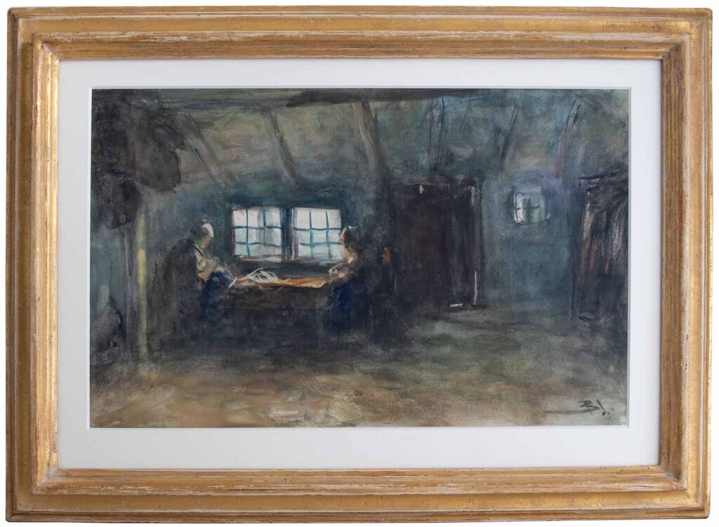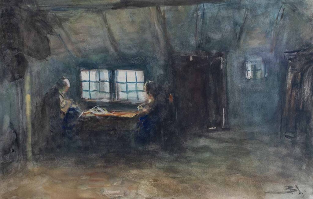 Zijn modellen hoefde hij niet uit het vissersdorp te halen. Het gezin Blommers telde maar liefst 10 kinderen. Blommers kon kiezen uit alle leeftijden. Vaak stak hij zijn kinderen in Scheveningse klederdracht. Naderhand liet hij ze op zijn doeken veel buiten spelen, ravottend in het duin, of pootje badend in zee. Zijn kleurenpalet was helder, licht en zonnig. Bernardus Johannus Blommers werd in Den Haag geboren en studeerde samen met Willem Maris aan de Haagse Academie. Hij is voornamelijk gewaardeerd voor zijn schilderijen met kinderen of vissersvolk op het strand van Scheveningen of Katwijk. Echter in het begin van zijn carrière schilderde hij ook graag Vissersinterieurs.