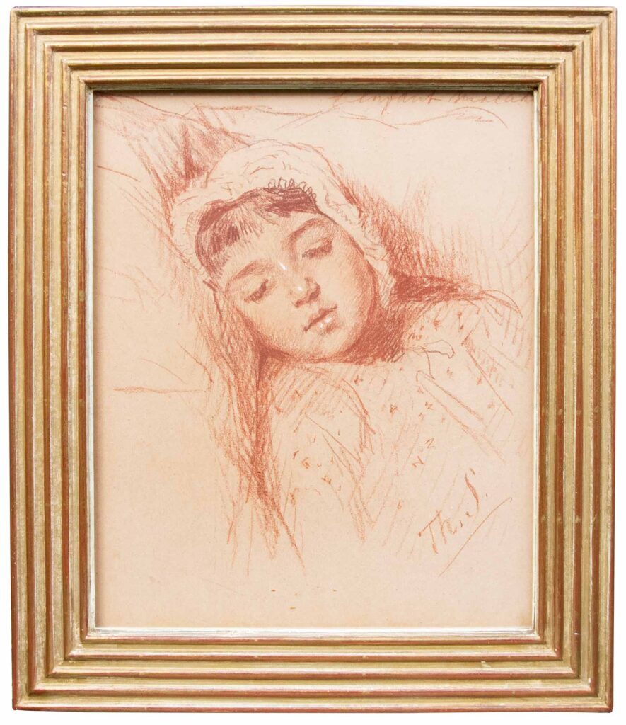Th. Schwartze (1852 – Amsterdam – 1918), rood krijt met wit gehoogd, 46 x 37 cm, gemonogrammeerd rechtsonder, te dateren 1887, annotatie boven- en achterzijde l’enfant malade