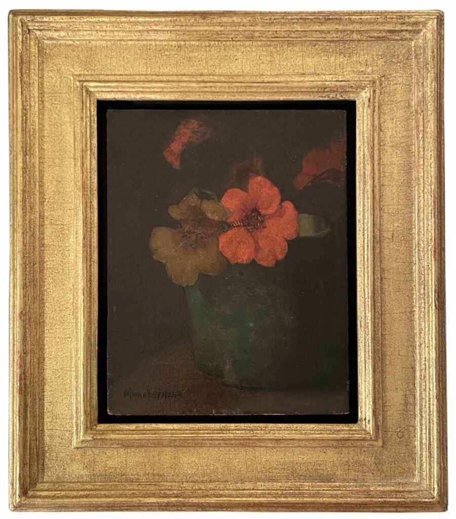 M. Wandscheer (Amsterdam 1856 – 1936 Ede), olieverf op paneel, 18 x 14 cm, tweemaal gesigneerd:  voorzijde M. Wandscheer linksonder en achterzijde M. Wandscheer Ede VERKOCHT