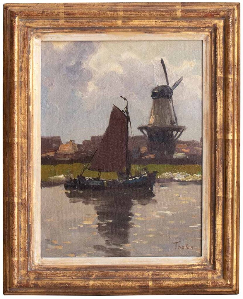 Hij onderscheidde zich van zijn voorgangers van de Haagse School door zijn heldere kleurgebruik. Hij beschouwde zichzelf dan ook niet als een vertegenwoordiger van deze stroming. Het gemeenschappelijke tussen beiden was vooral gelegen in het belang dat zij hechten aan de tonaliteit, de atmosfeer en de stemming in hun werken. Het waren vooral buitenschilders. Tholen was echter gevarieerder in zijn onderwerpskeuze en stond daardoor dichter bij de jongere generatie, de zgn. Tachtigers. Met zijn gevoelige toets en kleurpalet was hij een meester in het weergeven van atmosfeer. Tholen liet zich inspireren door de natuur. Hij schilderde landschappen, stads- en dorpsgezichten en vooral veel watergezichten met boten. Met zijn boot de ‘Eudia’ voer hij naar Giethoorn, de Zuiderzee en de Zuid-Hollandse plassen.