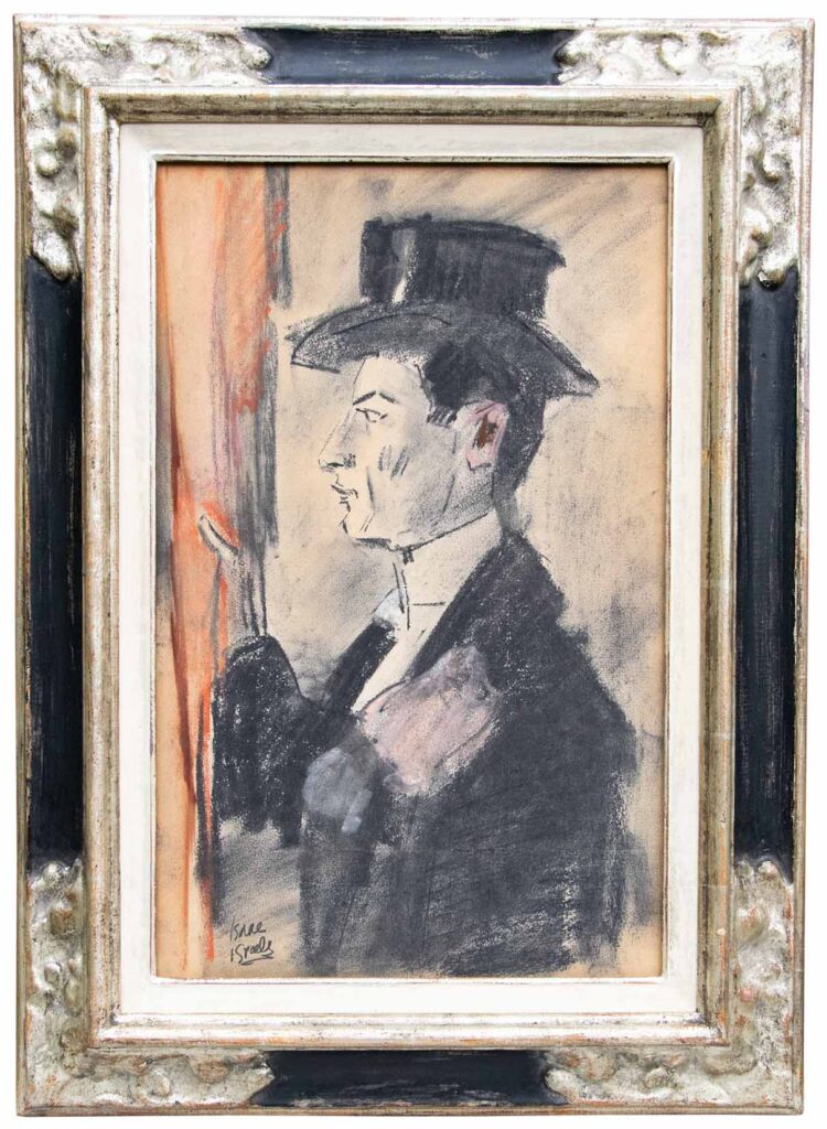De geportretteerde Isidoor Swaaf (1873 – 1940) was een Joodse cabaretier, liedjeszanger en komiek. In de catalogus Isaac Israels van Anna Wagner uit 1985 staat een vergelijkbaar portret in olieverf, afgebeeld op 53, nr. 42, collectie De Lakenhal Leiden