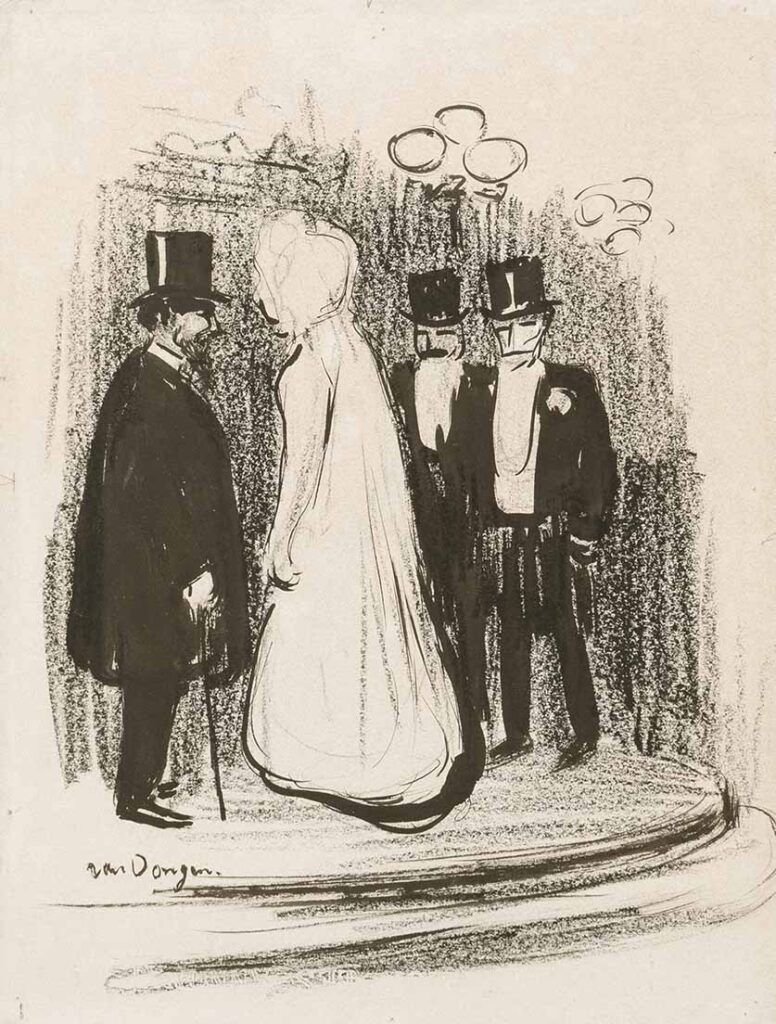 K. van Dongen (Delfshaven 1877 – 1968 Monte Carlo), zwart krijt, pen en penseel in zwarte inkt, 33 x 25 cm, gesigneerd linksonder, te dateren 1901