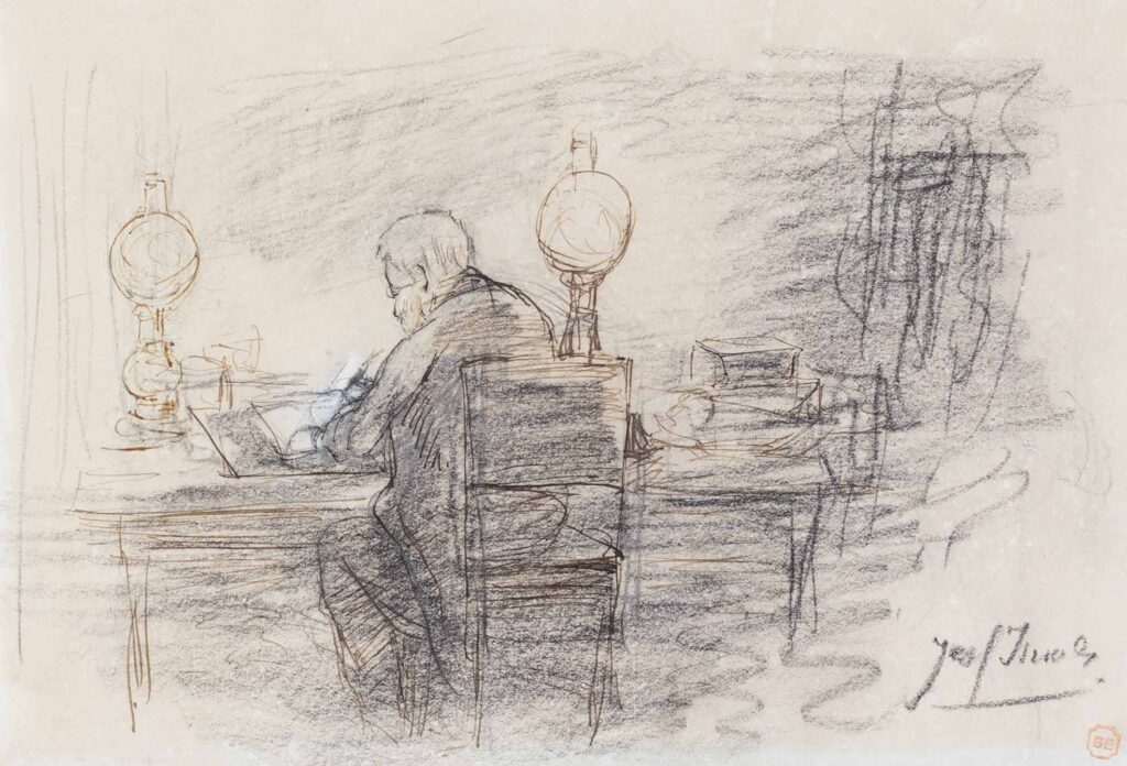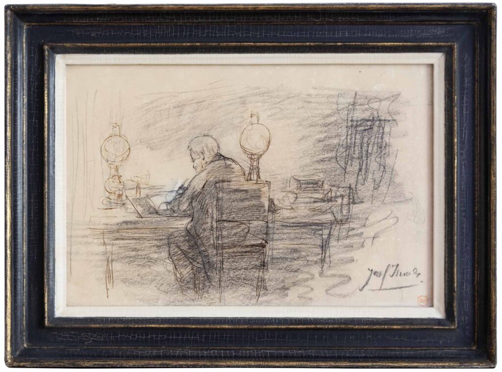 J. Israëls (Groningen 1824 – 1911 Den Haag), zwart krijt met wit gehoogd, 17 x 25 cm, gesigneerd rechtsonder