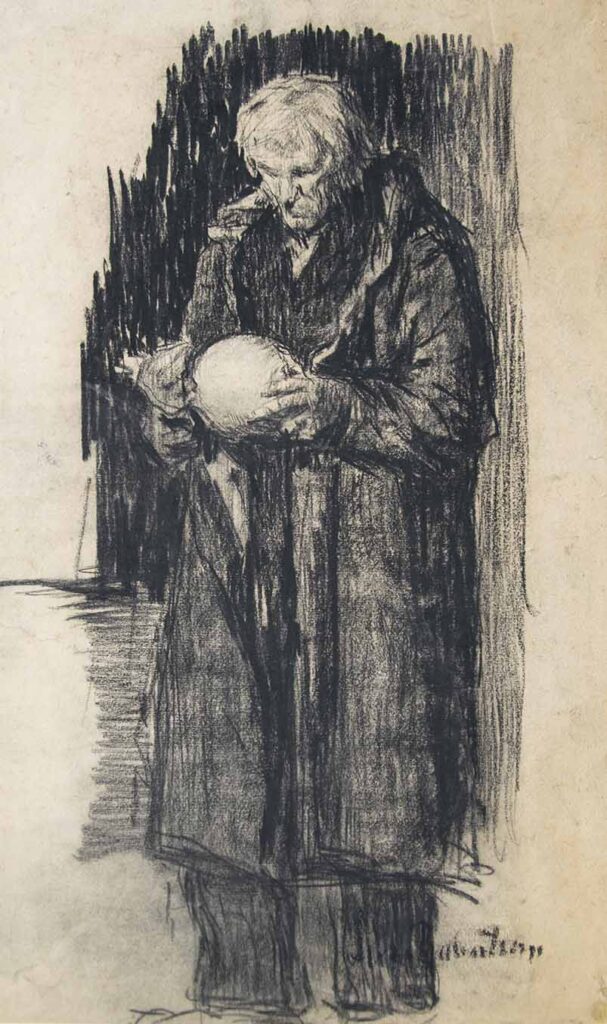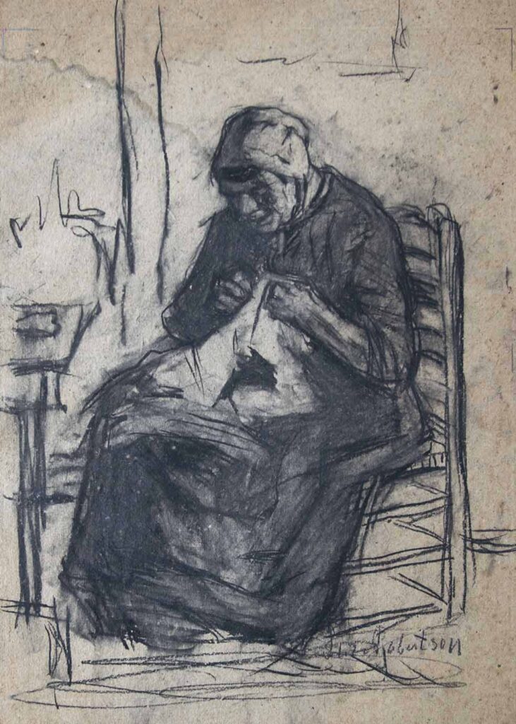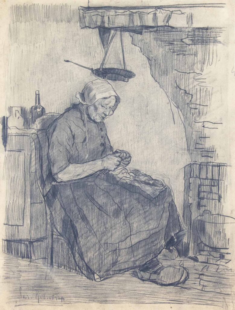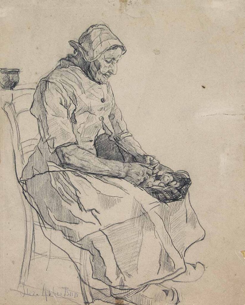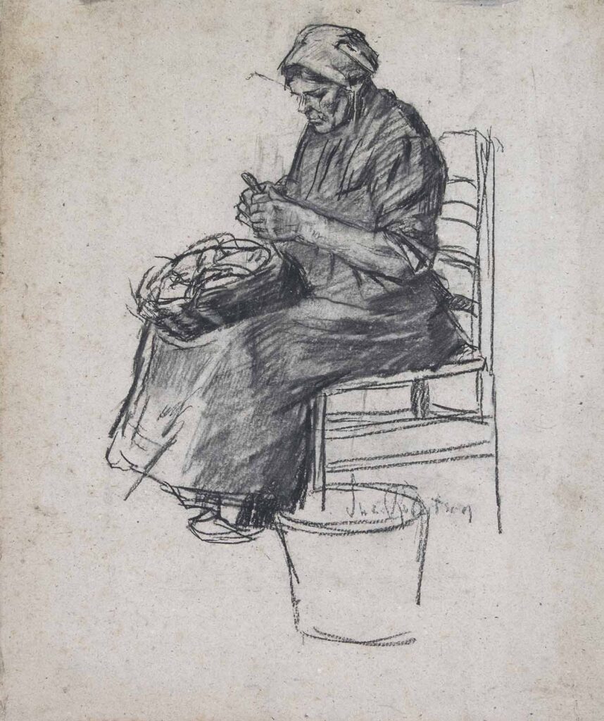 ‘Zittende vrouw aardappelen schillend’ VERKOCHT
