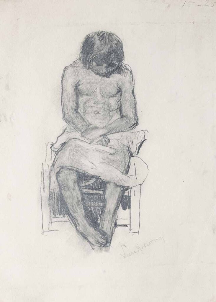 ‘Mannelijk zittend (half) naakt’ VERKOCHT