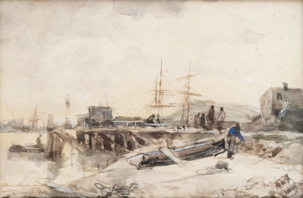 J.H. van Mastenbroek (1875 – Rotterdam – 1945), sepia en aquarel, 15 x 23 cm, gesigneerd linksonder met annotatie Newhaven aug ’98 en monogram VERKOCHT