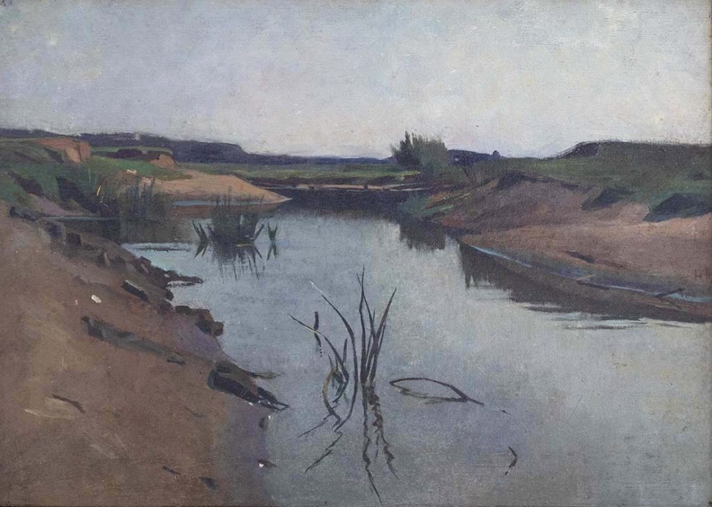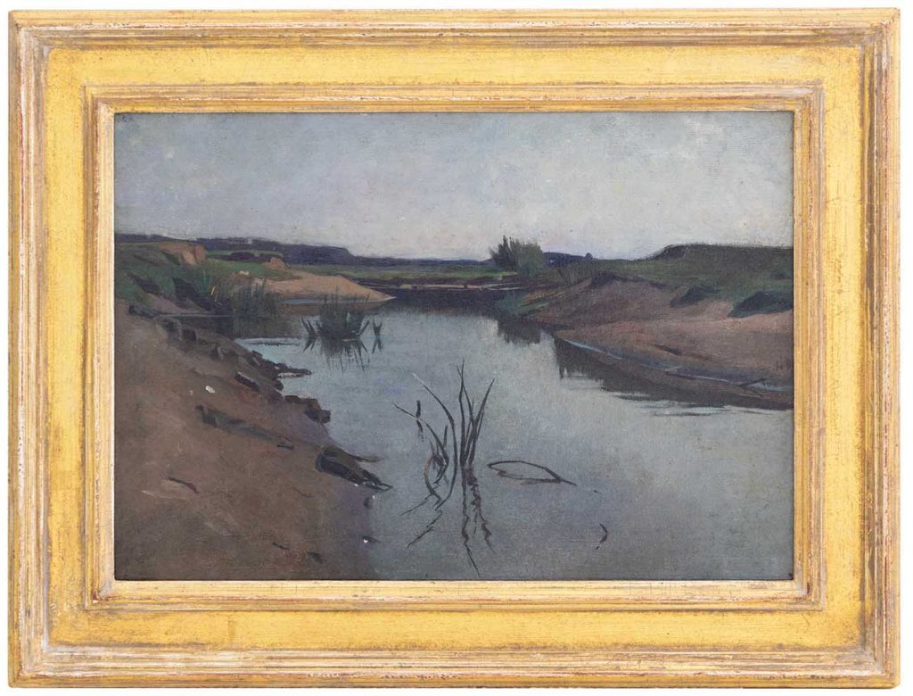 P. Meiners (Oosterbeek 1857 – 1903 Lage Vuursche), marouflé, 23,5 x 33 cm (inclusief lijst 32 x 42 cm), gemonogrammeerd rechts midden