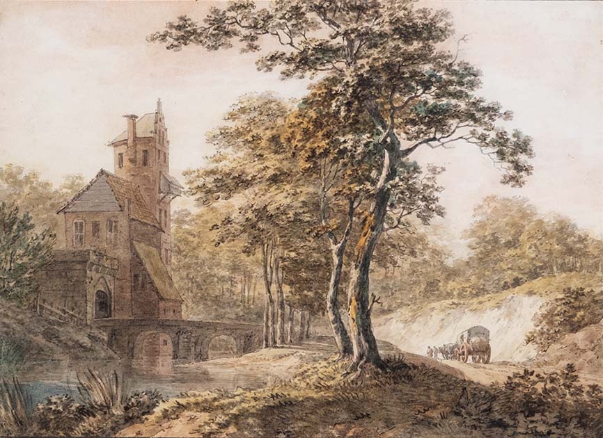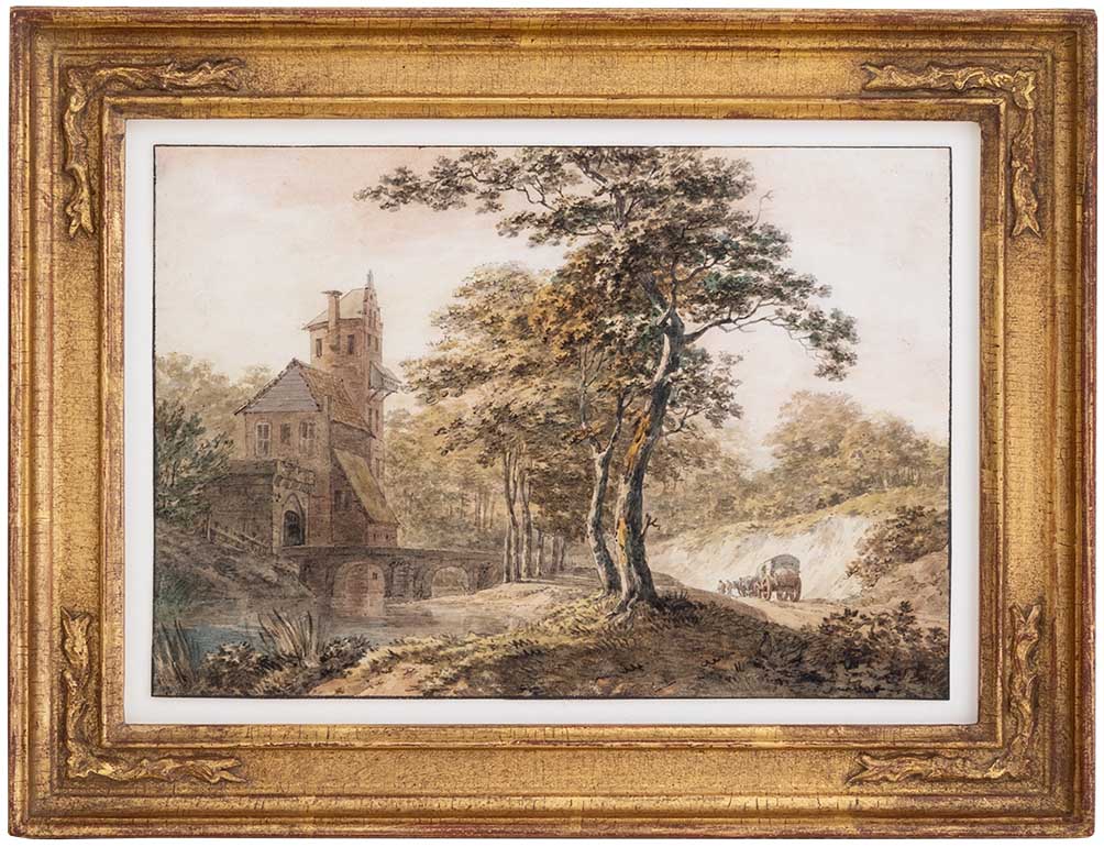 H. Numan (Ezinge 1744 – 1820 Amsterdam), aquarel, 16 x 22 cm (inclusief lijst 23 x 30 cm), gesigneerd op de achterzijde linksonder