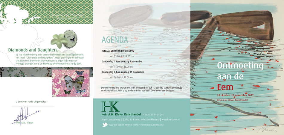 De rivier de Eem die vlakbij de kunsthandel stroomt inspireerde mij tot een bijzondere tentoonstelling. Een ontmoeting tussen oude en nieuwe landschappen. Het verstilde werk van Meria Bakker laat zich prachtig combineren met landschappen uit mijn eigen collectie werken op papier van 19e eeuwse en vroeg 20e eeuwse kunstenaars. Avondrood van B.J. Blommers, gezicht [...]